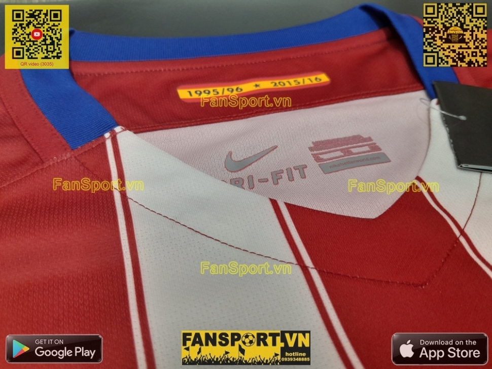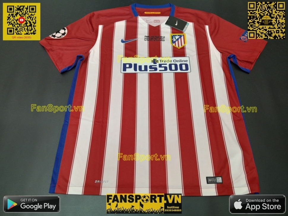 Kiểu áo đấu sân nhà Atletico Madrid mùa giải 2015-2016. Mùa giải này Atletico Madrid đã vào đến trận chung kết Champion League nhưng lại để thua Real Madrid ở loạt sút luân lưu với tỉ số 3-5, sau khi hai đội hoà 1-1 trong 120 phút thi đấu chính thưc.