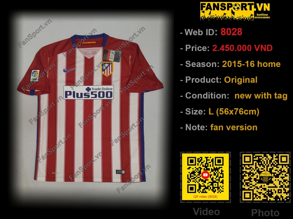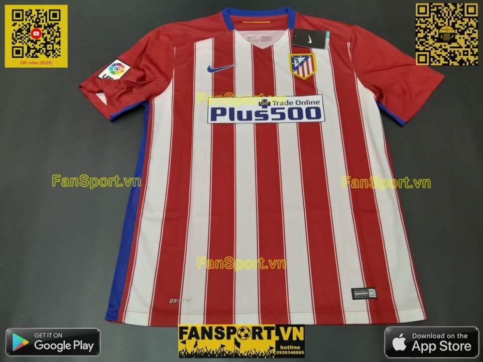 Kiểu áo đấu sân nhà Atletico Madrid mùa giải 2015-2016. Mùa giải này Atletico Madrid đã vào đến trận chung kết Champion League nhưng lại để thua Real Madrid ở loạt sút luân lưu với tỉ số 3-5, sau khi hai đội hoà 1-1 trong 120 phút thi đấu chính thưc.