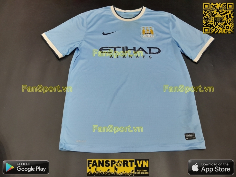 Đây là áo sân nhà của Manchester city mùa giải 2013-2014. Mùa giải này Manchester City dành cú đúp danh hiệu Premier League và League Cup.
