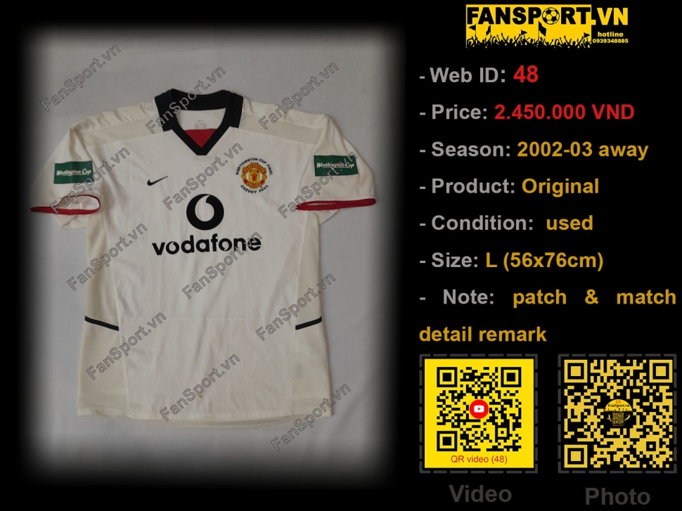 Áo đấu sân khách của Manchester United mùa giải 2002-2003. Áo này United đá trận chung kết Worthington Cup với Liverpool và thua với tỉ số 0-2