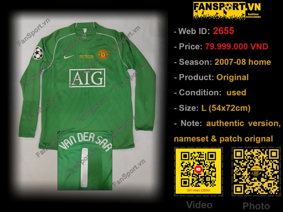 Kiểu áo sân nhà dành cho thủ môn Manchester United ở mùa giải 2007-2008, và kiểu áo này là kiểu áo Van Der Sar sử dụng trong trận chung kết Champion League 2008. Trong trận chung kết này thì ManUtd hoà 1-1 với Chelsea trong thời gian thi đấu chính thức. Ở loạt đá penalty, Van Der Sar đã xuất săc cản phá quả đá thứ 7 của Chelsea giúp Manchester United vô địch Champion League lần thứ 3 trong lịch sử câu lạc bộ.