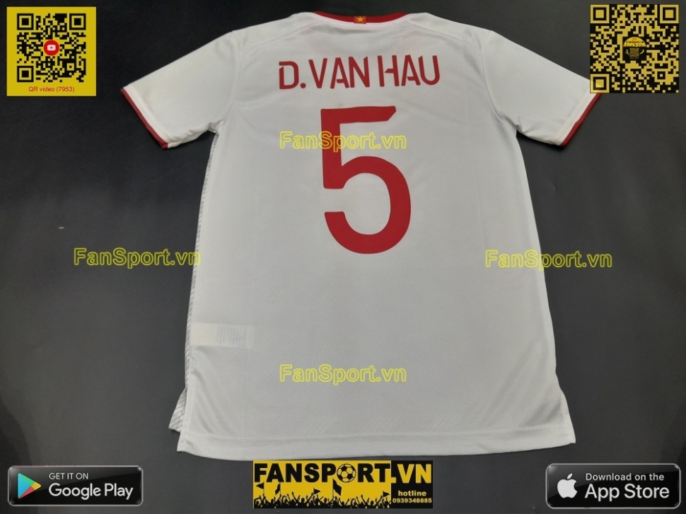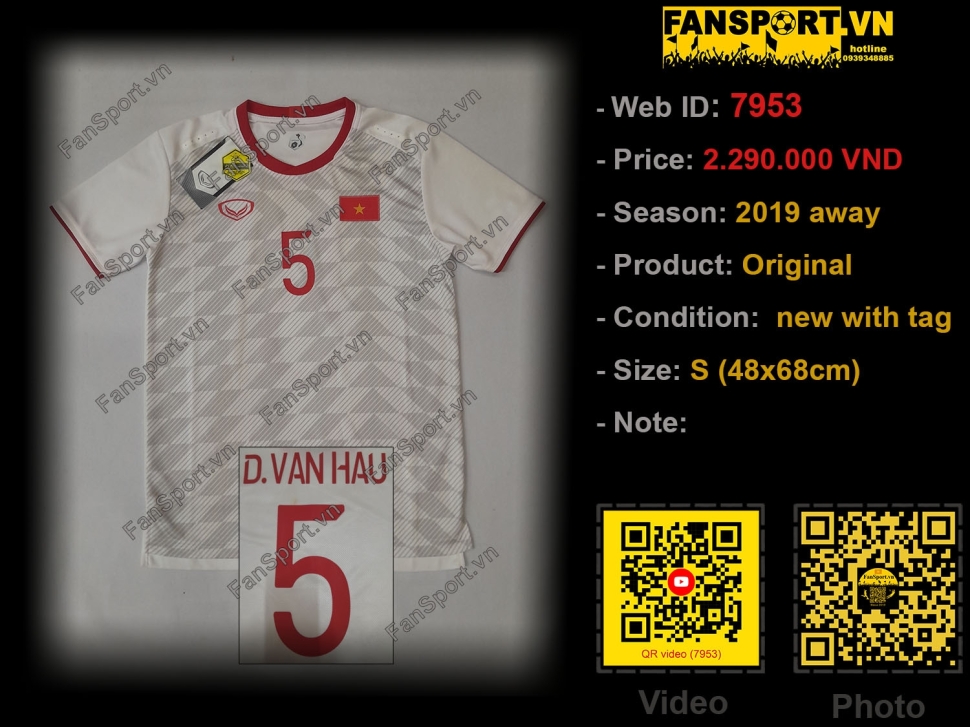 Kiểu áo đấu này là áo đấu sân khách của đội tuyển Việt Nam trong năm 2019. Trong năm 2019 thì bóng đá nam và nữ đều vô địch Sea Game 30. Đặc biệt chung kết Sea Game 30 bóng đá nam, đội Việt Nam đã mặc áo trắng và giành chiến thắng 3-0 trước Indonesia, trong đó Văn Hậu đã ghi 2 bàn thắng.