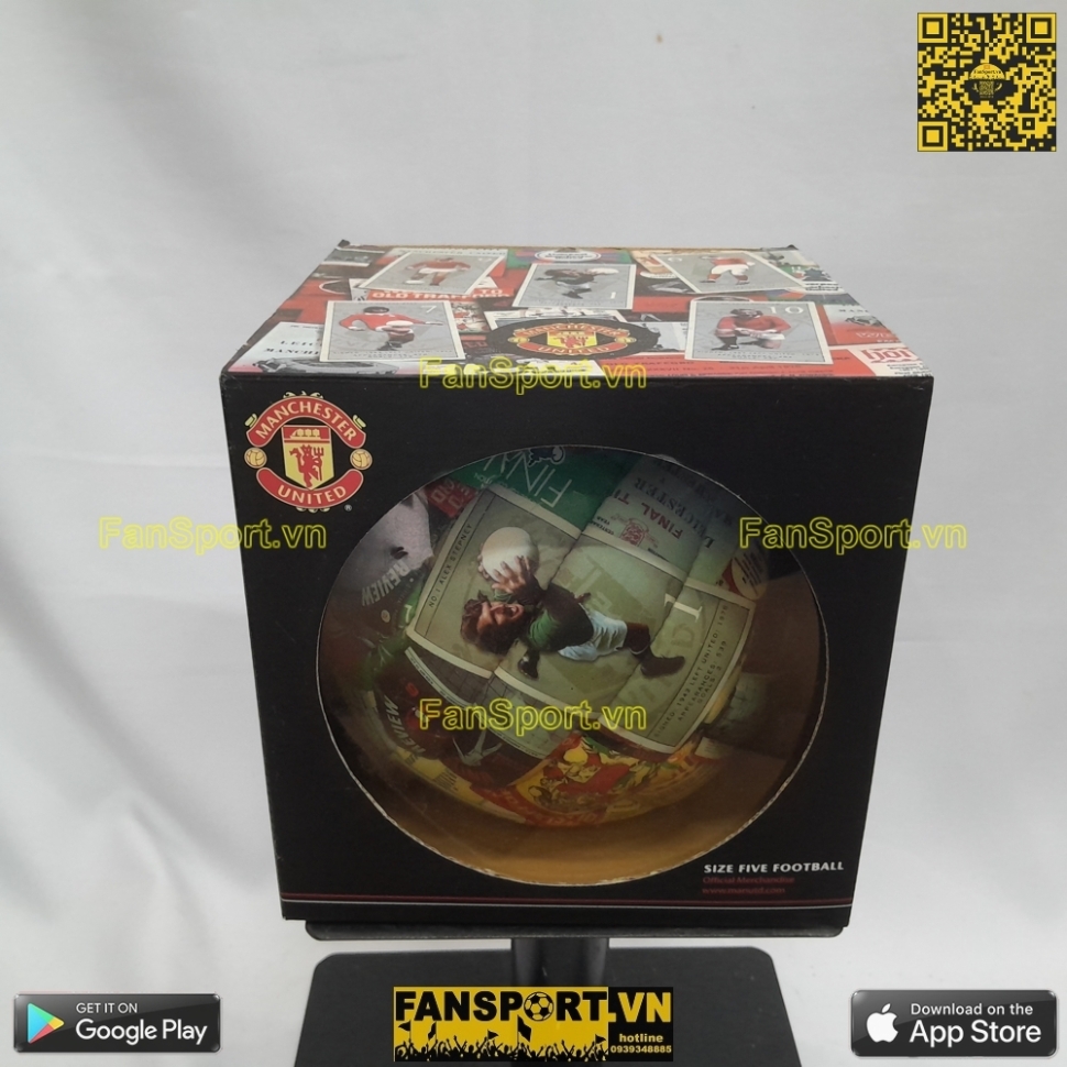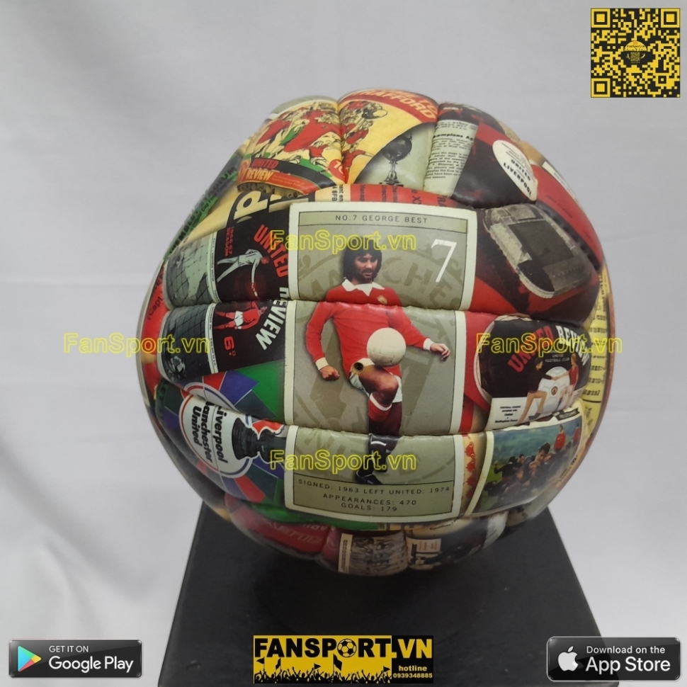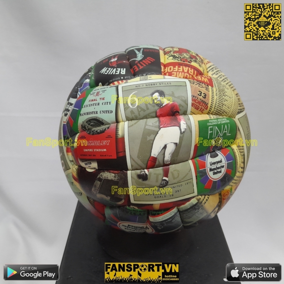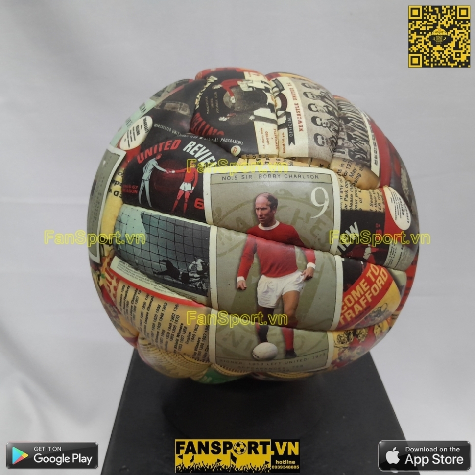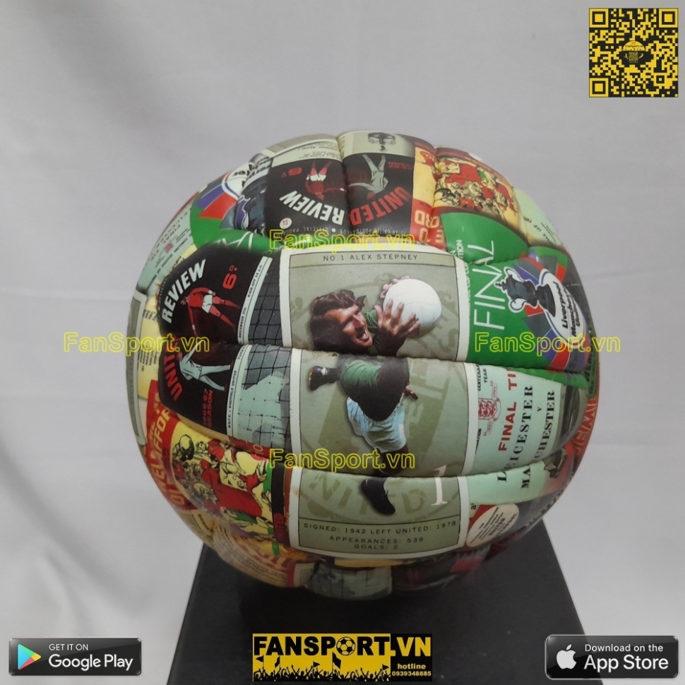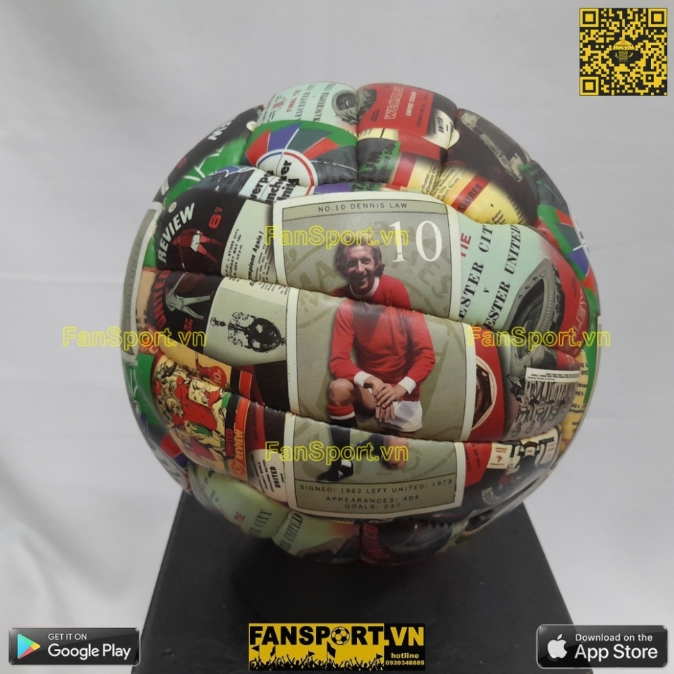 Bóng size 5 hình các cầu thủ thập niên 60 của Manchester United như Sir Bobby Charlton, Denis Law, George Best, Nobby Stiles, Alex Stepney... Hàng chính hãng từ Manchester United