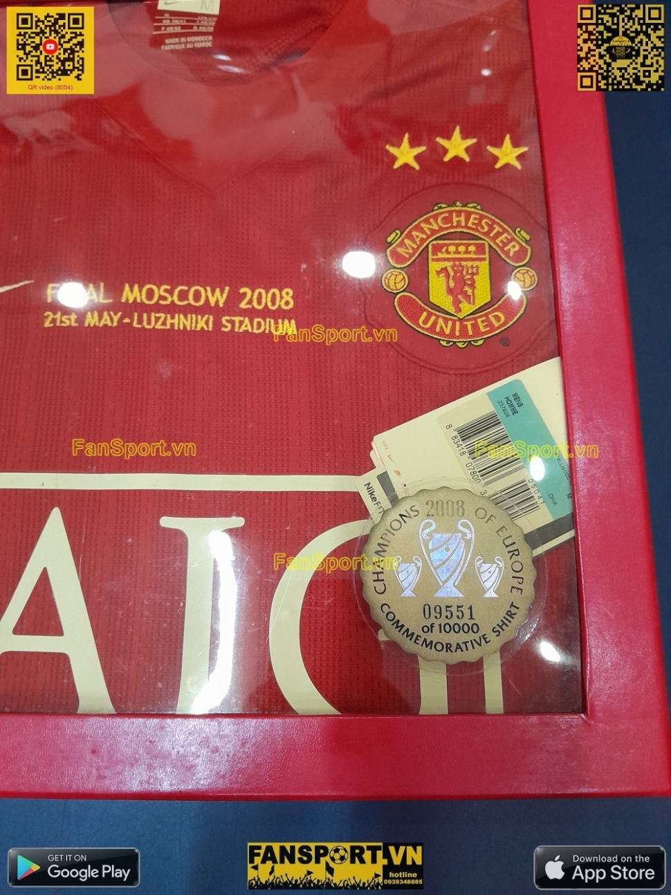 Hộp áo này được Manchester United giới thiệu vào ngày 03/02/2009 trước trận lượt về với Inter Milan của Mourinho diễn ra vào ngay 24/02/2009. Đây là một bộ sưu tập các vật phẩm kỉ niệm cho chức vô địch Champion League năm 2008 của Manchester United và được sản xuất có giới hạn chỉ 10.000 hộp. Điểm nổi bật của hộp áo là áo đấu sân nhà giai đoạn 2007-2009 với dòng chữ thêu "FINAL MOSCOW 2008 21st May – LUZHNIKI STADIUM" và trên logo áo đấu của câu lạc bộ có 3 ngôi sao màu vàng tượng trưng cho ba lần vô địch Châu Âu vào các năm 1968, 1999 và 2008. Ngoài ra hộp áo còn có các vật phẩm khác là programme trận chung kết Champion League 2008 và lá thư Sir Alex Ferguson gửi đến người hâm mộ sau chức vô địch 2008. Hộp áo này không đính kèm giáy chứng nhận mà số chứng nhận là một sticker đánh số thứ tự hộp và dánh trên mặt bìa kiếng của hộp áo. |