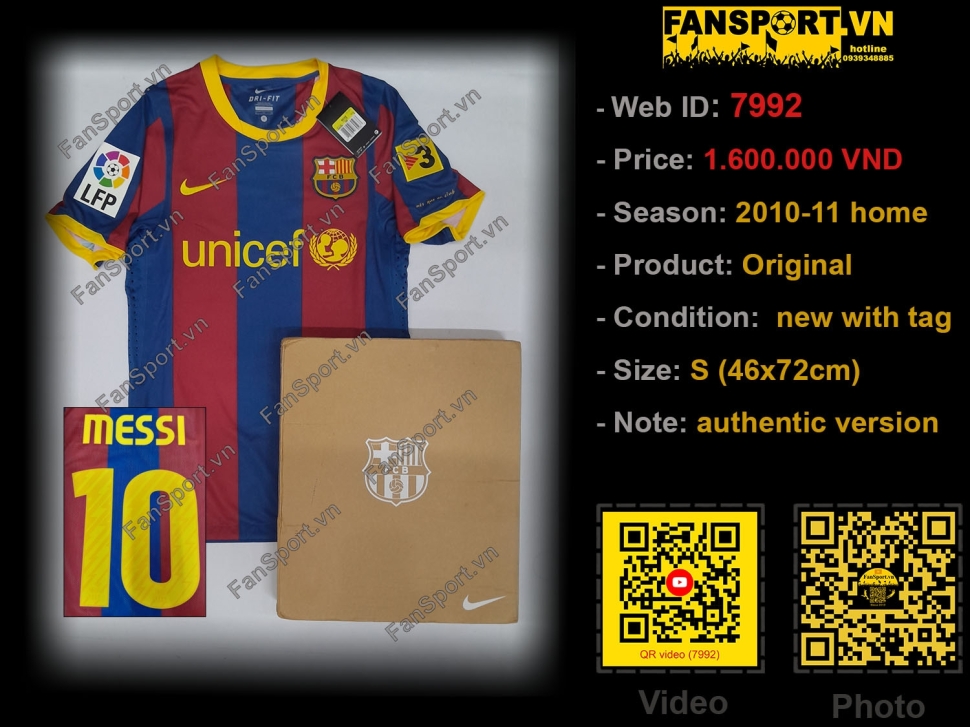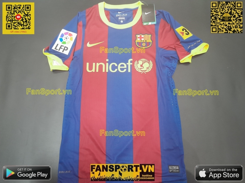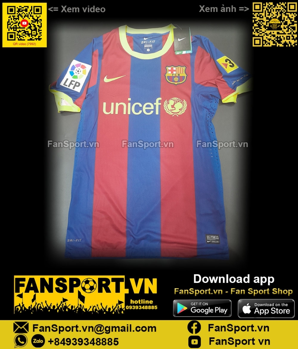 Kiểu áo đấu sân nhà của Barcelona mùa giải 2010-2011. Áo bạn đang xem là áo chính hãng với patch và match detail được thêm bổ sung vào giống với kiểu áo chung kết Champion League 2011
