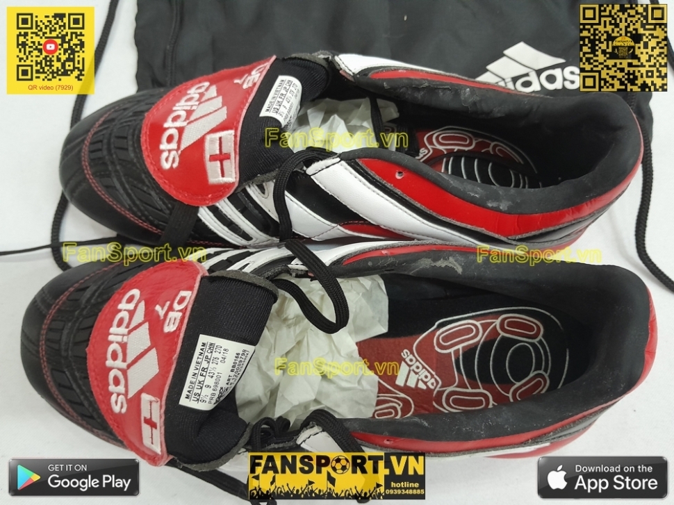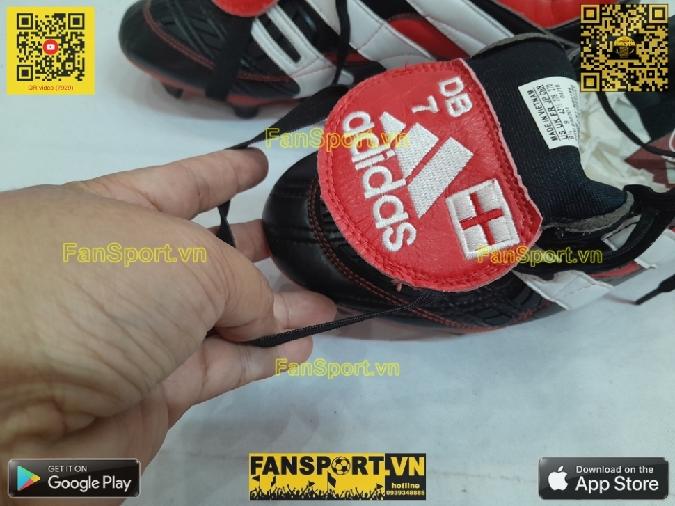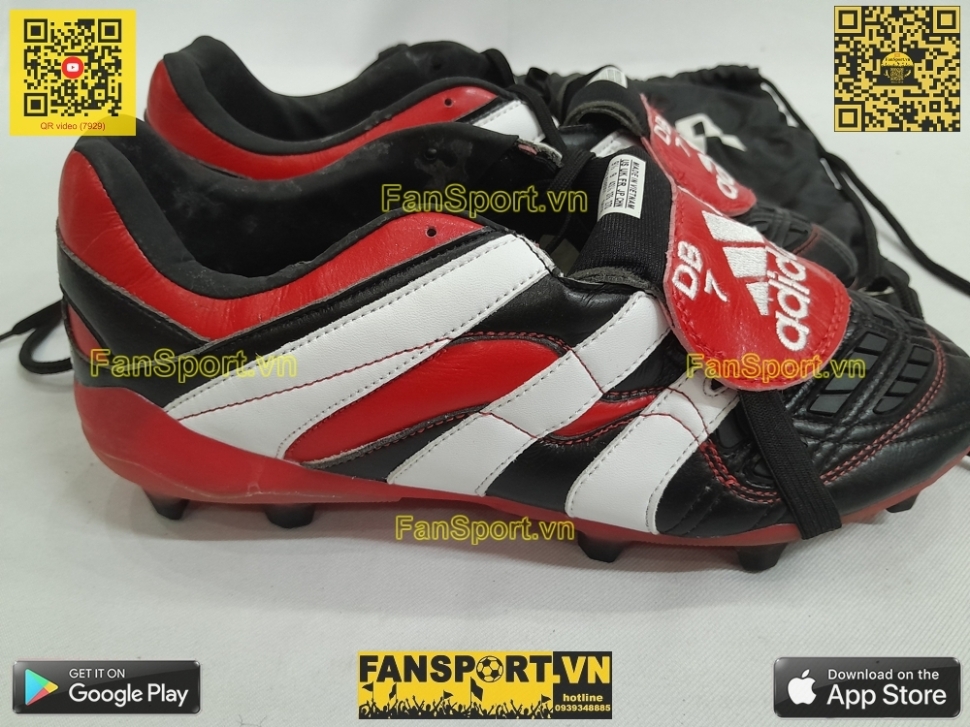 Đây là phiên bản "Adidas Predator Accelerator FG 1998 20th Anniversary" kỉ niệm 20 năm đôi giày nổi tiếng Adidas Predaotr Accelerator với 3 màu đỏ, trắng và đen. Kiểu giày này được Beckham sử dụng những năm 1998 cũng là thời gian thành công trong sự nghiệp của David Beckham. Đôi giày được Adidas phát hành vào ngày 23 tháng 8 năm 2018. Riêng đôi giày bạn đang xem là một đôi cực kì giới hạn vì nó có thêu thêm quốc kỳ Anh và "DB 7" viết tắt David Beckham 7.
